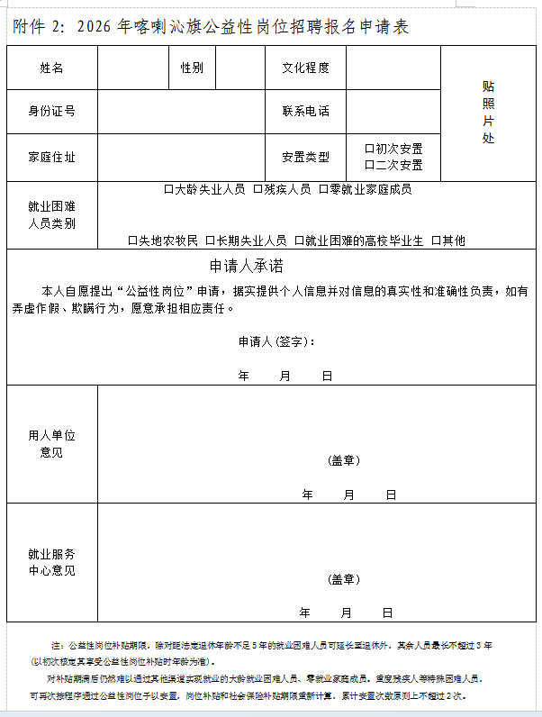 2.《2026年喀喇沁旗公益性岗位招聘报名申请表》