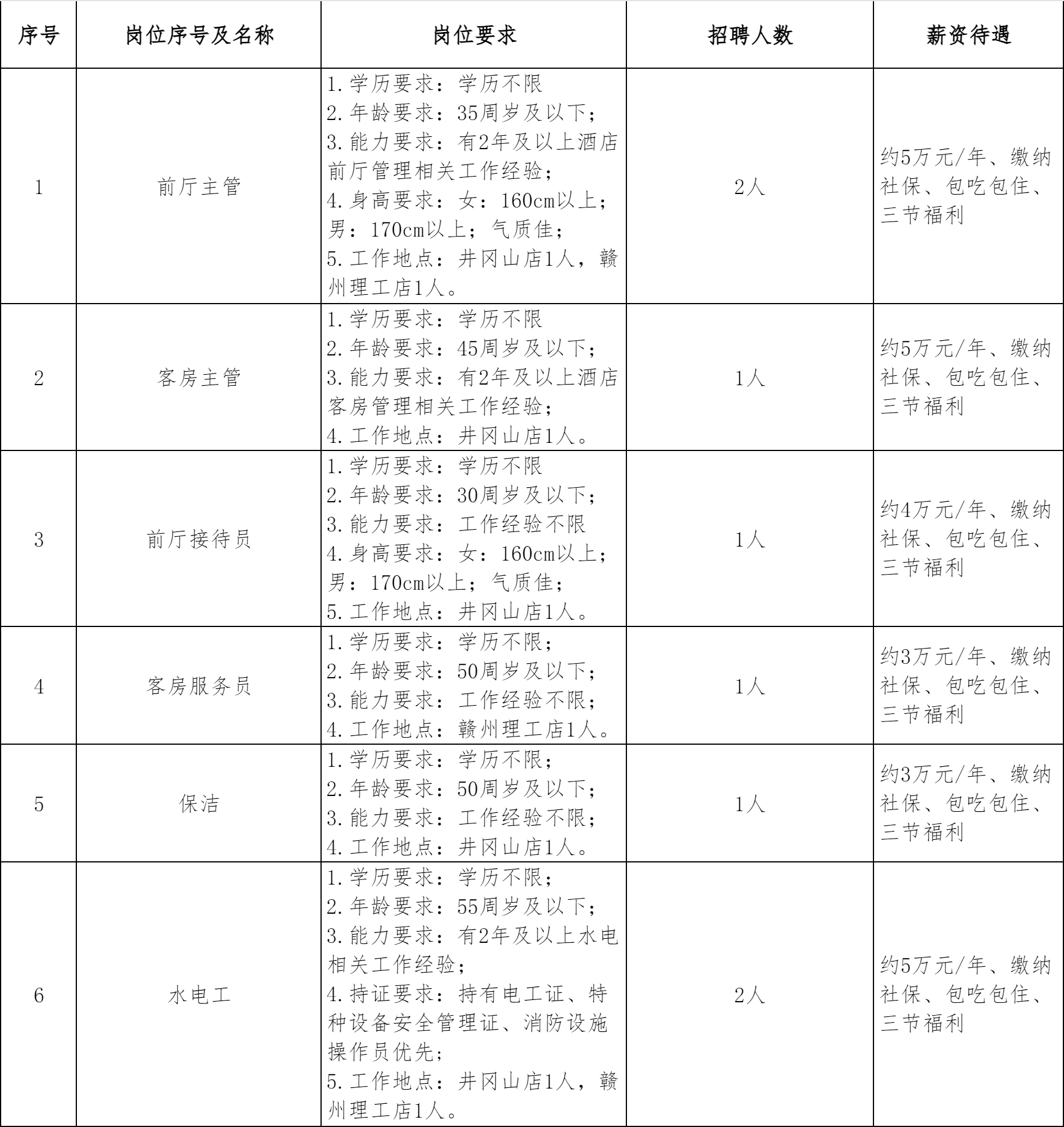 附件:2026年赣州橙芷酒店有限公司招聘岗位及任职要求