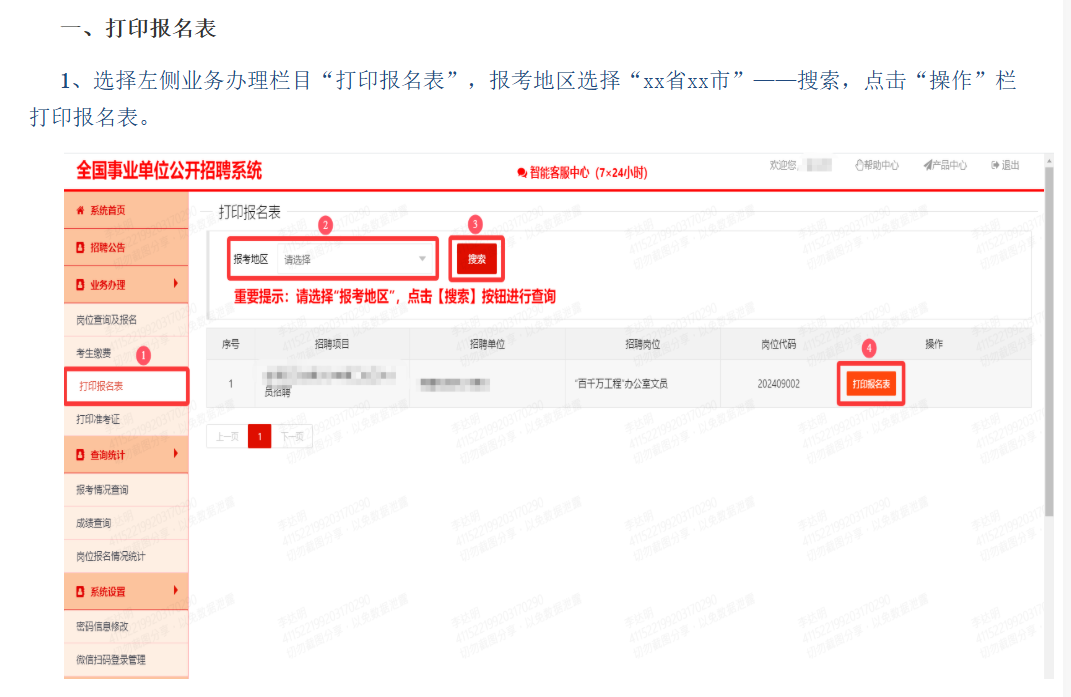 7.打印准考证:通过资格初审并进行考试确认的报考者需关注全国事业单位招聘网(网址:https://www.qgsydw.com/xxywzlzt/bmzt/1895)相关通知,需于指定时间内,登录全国事业单位招聘网(网址:https://www.qgsydw.com/xxywzlzt/bmzt/1895)平台自行下载、打印本人准考证,不再另行通知,逾期未打印准考证的或者未及时提供合格照片无法下载准考证的,责任自负。