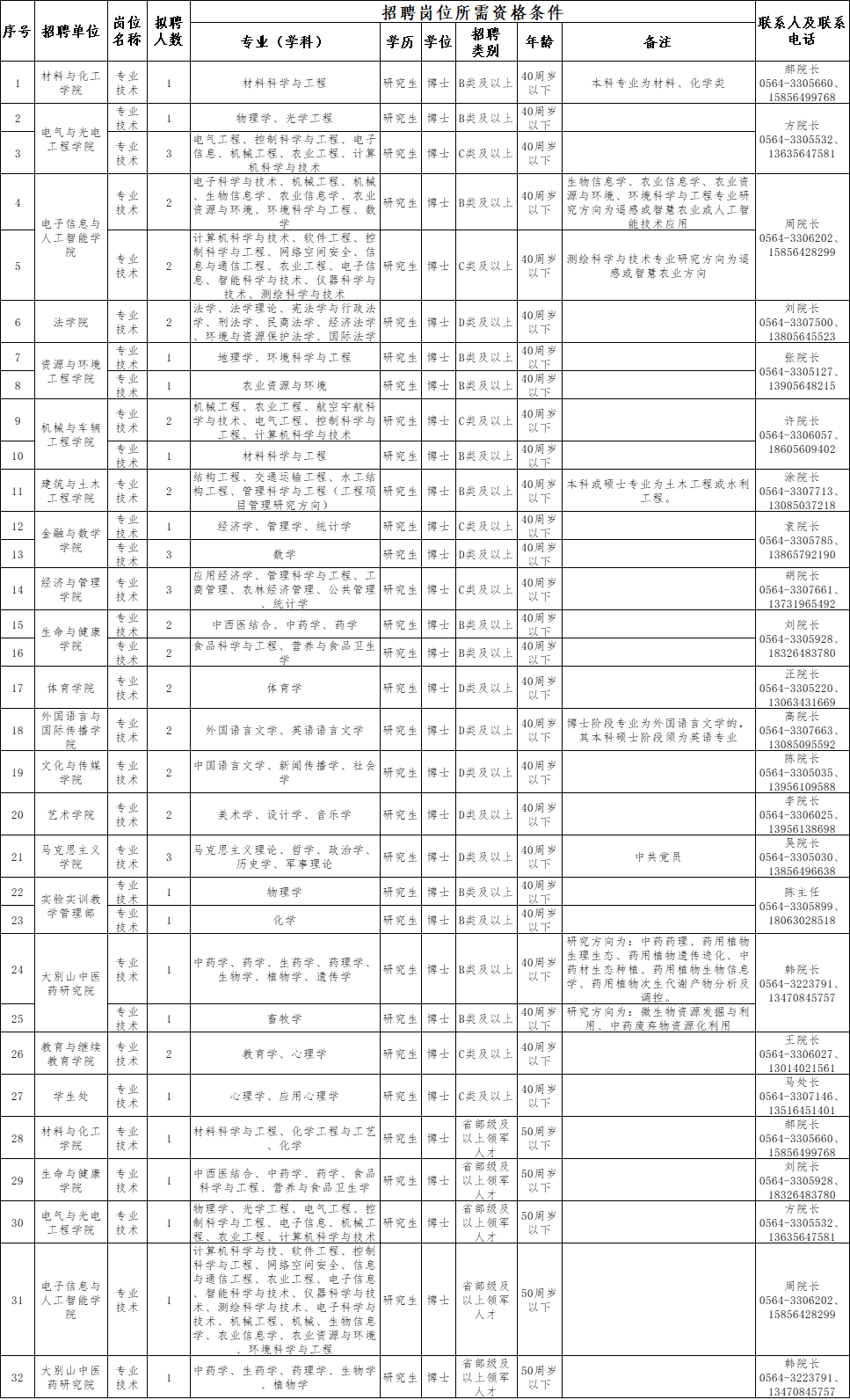 皖西学院2026年度公开招聘高层次人才52人,具体岗位信息详见《皖西学院2026年度高层次人才招聘计划一览表》(附件1),均纳入事业编制。招聘类别与相关要求见《2026年度人才招聘类别与成果认定标准》(附件2)。