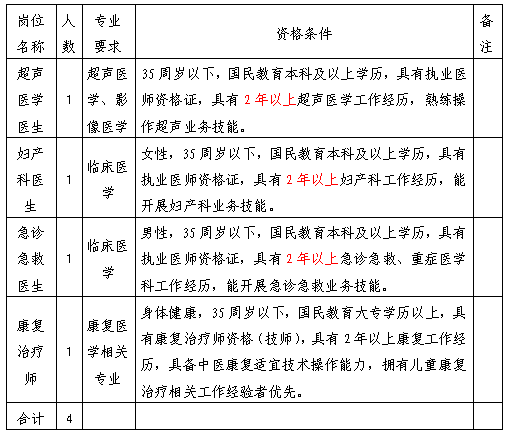 此次招聘为急诊急救、妇产科、超声医学特需(编外)医生、康复治疗师,采取笔试、面试及考核(实践技能操作)方式进行,择优录用。