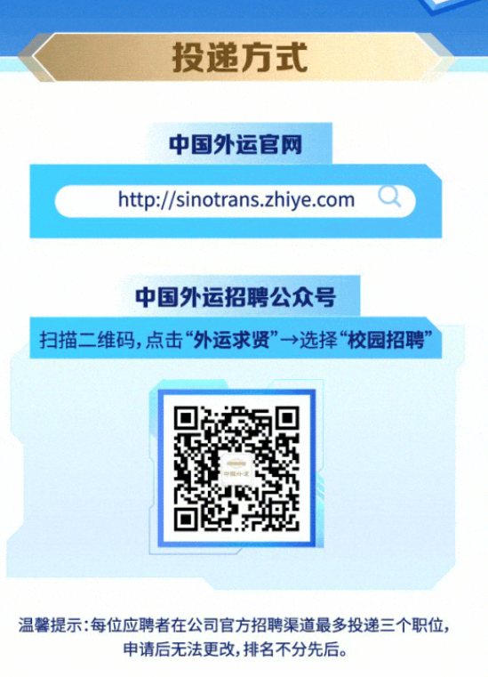 扫描二维码,点击 “外运求贤”→选择 “校园招聘”