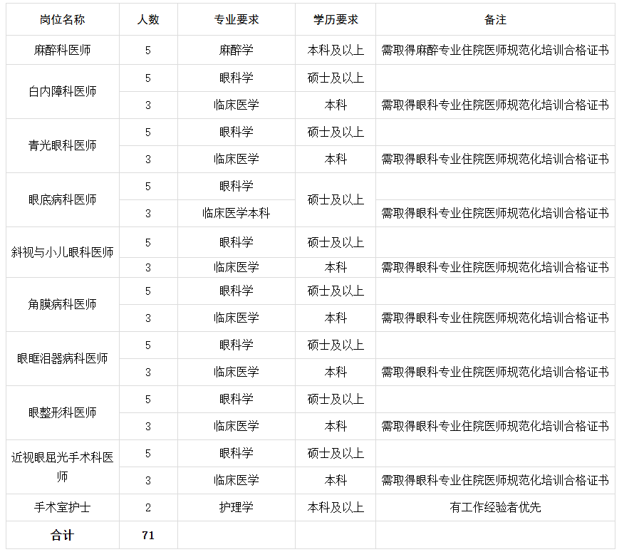 为进一步加强我院人才队伍建设,促进医院高质量发展,根据医院发展规划,现面向社会公开招聘各类优秀人才71名,有关事宜公告如下: