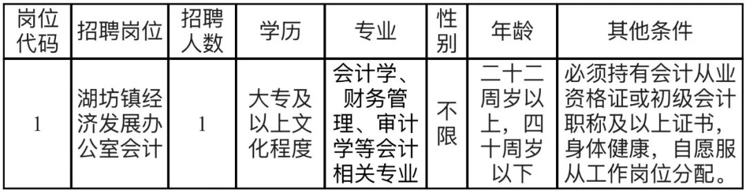 根据工作需要,湖坊镇拟公开招聘劳务派遣岗位人员一名,现将有关事项公告如下: