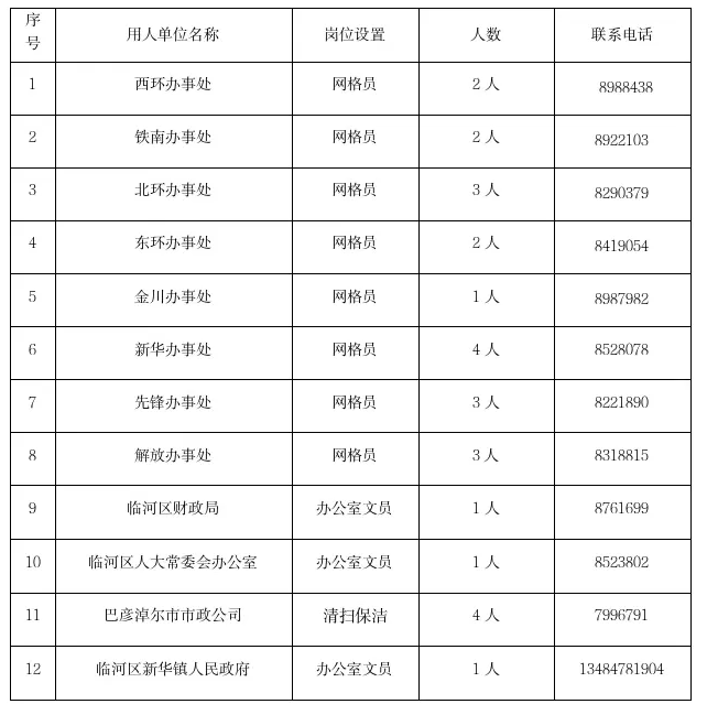 (一)公示对拟聘用人员在临河区就业服务中心公众号公示5个工作日。公示期间设立举报电话0478-8521239,广泛接受群众监督。