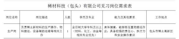 招聘岗位及见习要求