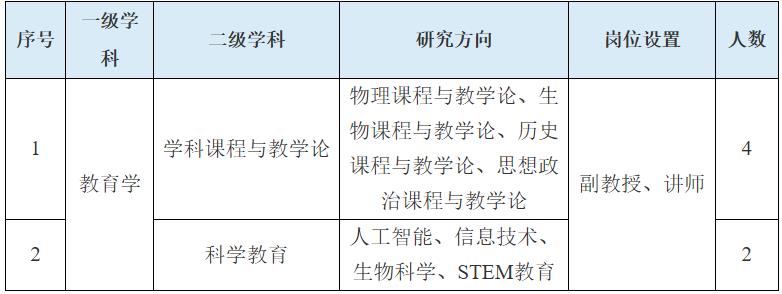 1. 副教授岗位:国内外高水平院校、科研机构已受聘相应职称的优秀教师,或综合素质较好、科研业绩突出的优秀青年人才。截至报名截止时间,副教授岗位年龄一般不超过40周岁,学术能力突出或专业急需紧缺的,年龄可适当放宽。