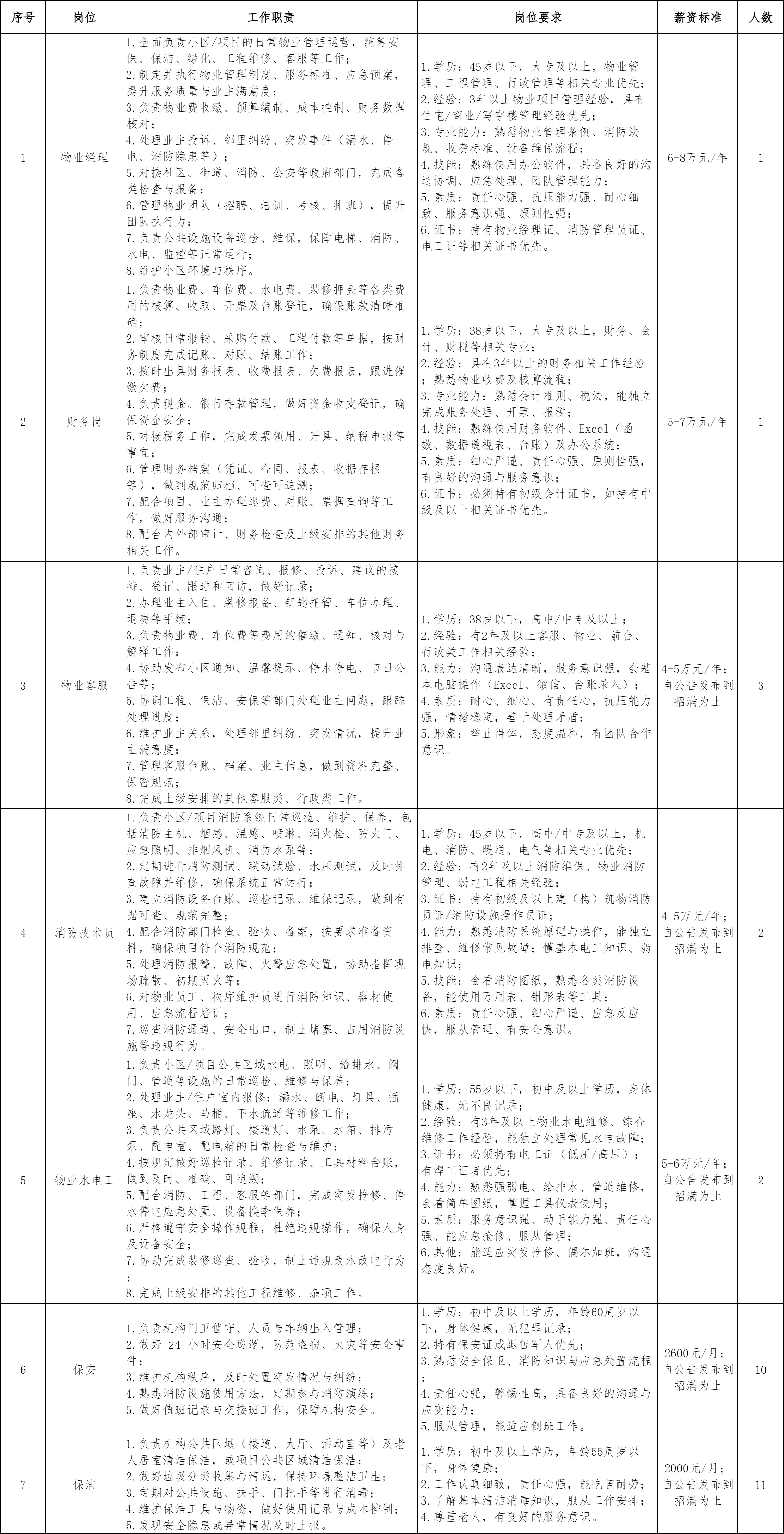 泰和县工投建设集团有限公司是经县委、县政府批准成立的国有独资企业,其下属泰和县旭泰物业服务有限公司成立于2025年,是一家以物业管理、单位后勤管理服务为主的企业。根据公司业务发展需求,决定面向社会公开招聘30名工作人员,现就有关事项拟定如下招聘方案: