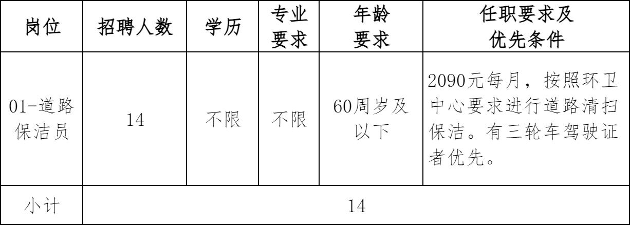 详见附件《吉州区城市环境卫生服务中心公开招聘岗位及任职要求》。