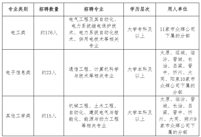 太原、运城、临汾、晋城、长治、吕梁、晋中、忻州、大同、朔州、阳泉11家市众辉公司下属的县(市、区)分部。考生录取后与各市众辉公司签订劳动合同。