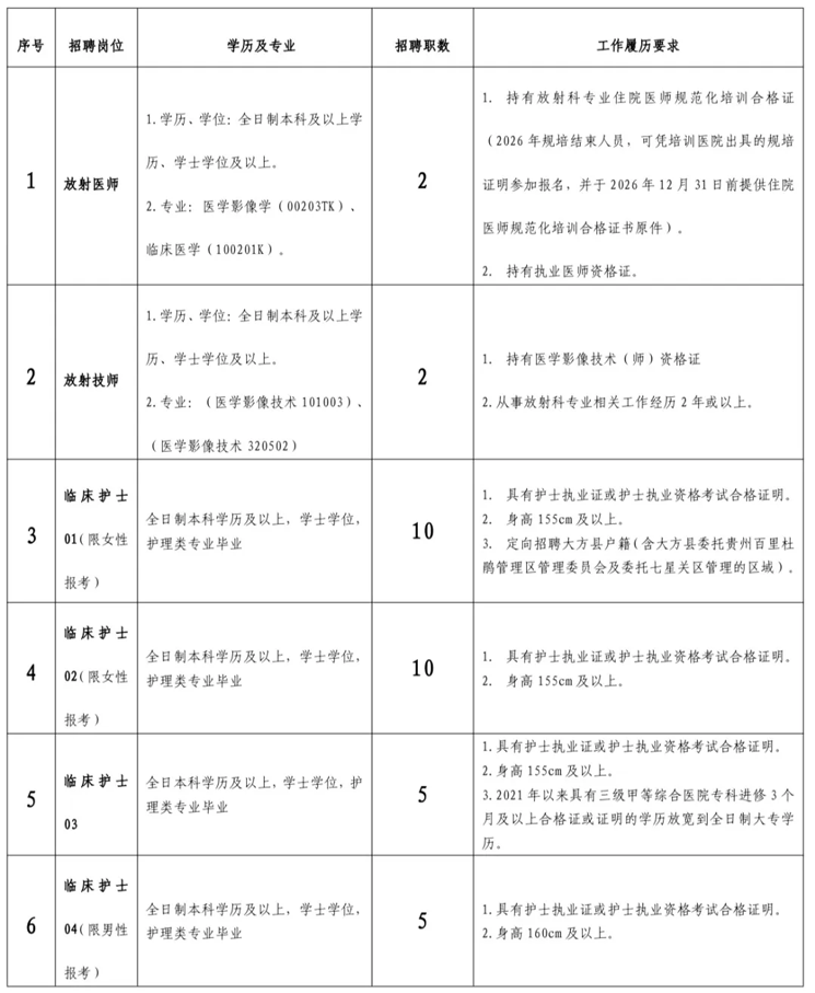 3.报名地点:大方县人民医院人力资源科(大方县红旗小区)。