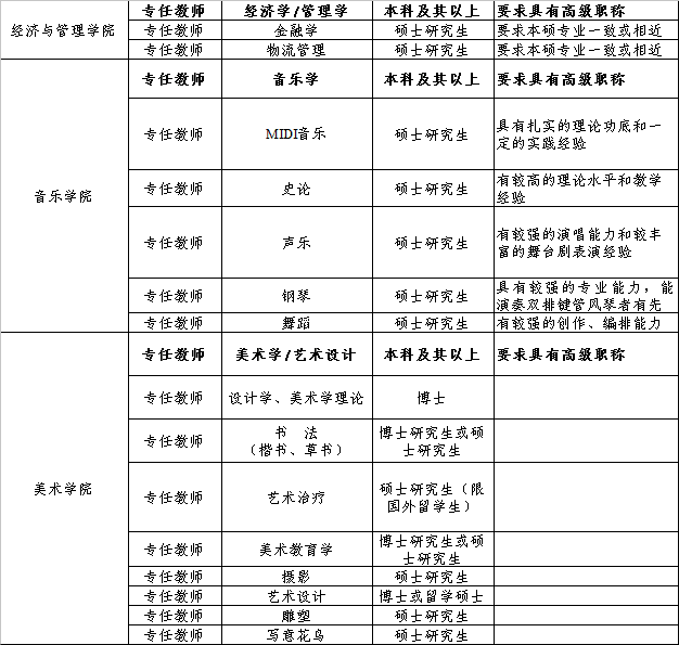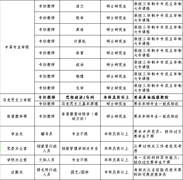 现面向社会诚聘一定数量的专业人才。欢迎有志之士来我校发展,一经录用,待遇从优。具体如下: