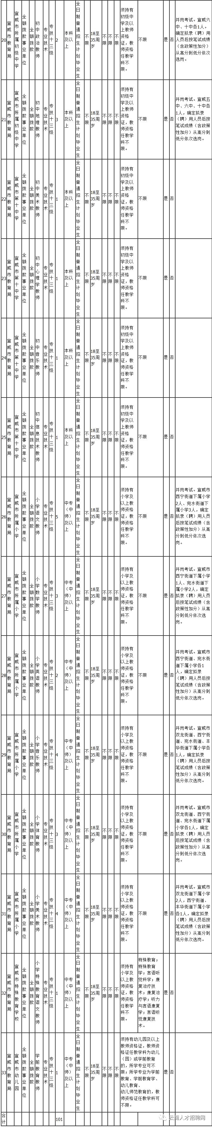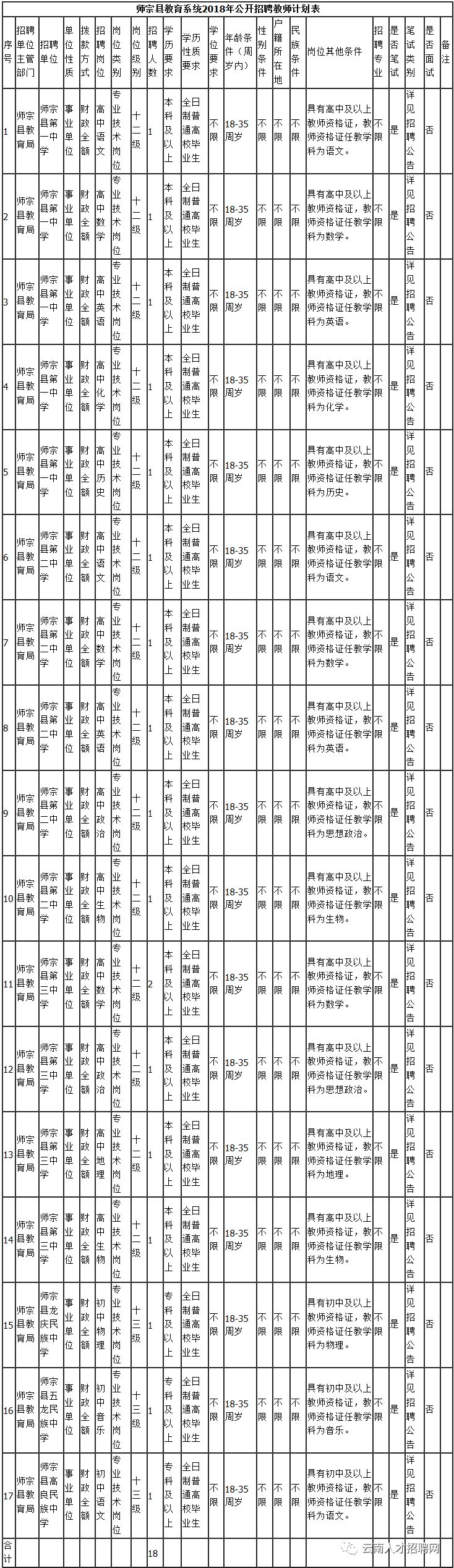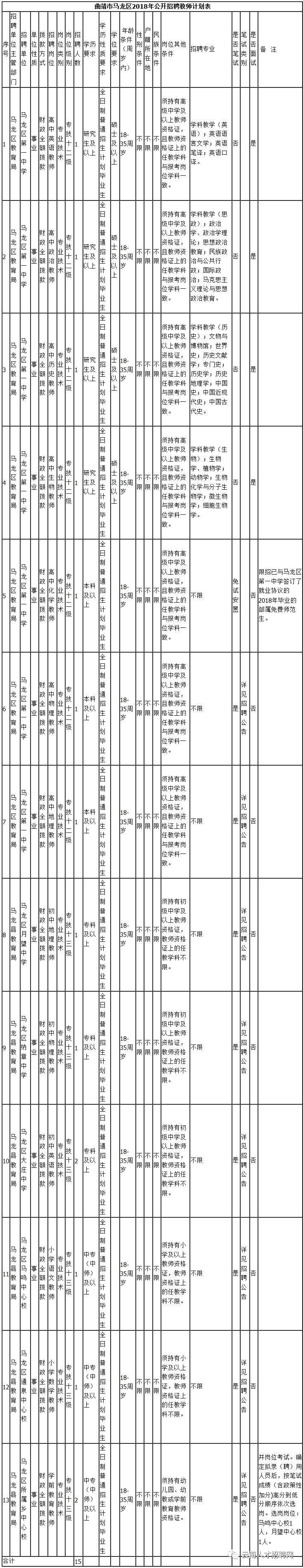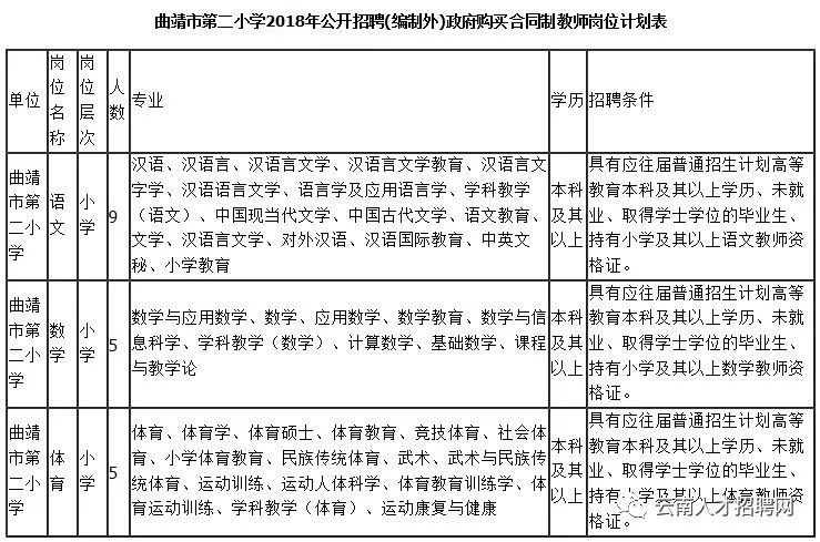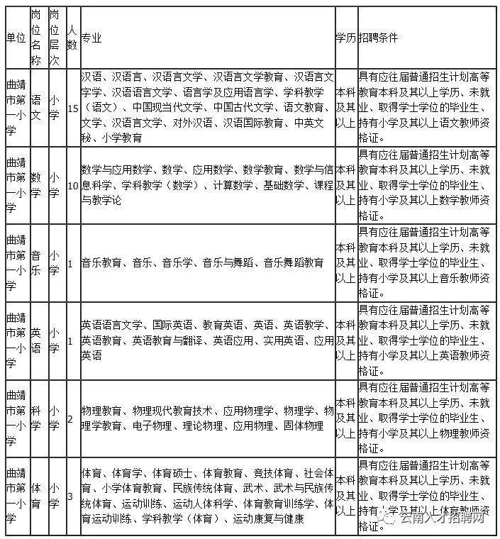 曲靖市第一小学2018年公开招聘岗位表(编外)