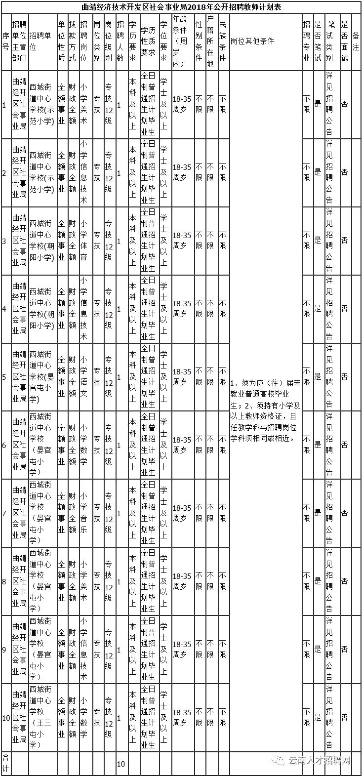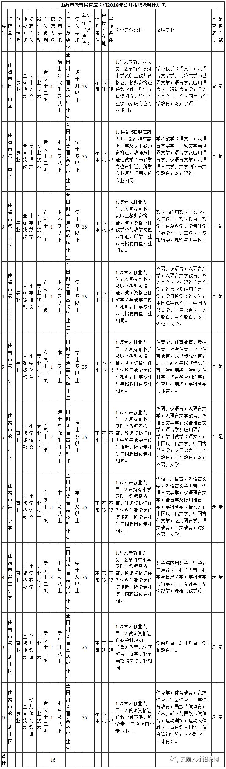 报名方式:现场报名;报名时间:2018年7月9日至11日;报名地点:详见公告考试时间:7月22日笔试科目:《教育学》《教育心理学》《专业知识》《教法技能》曲靖市第一小学2018年公开招聘岗位表(编外) ...