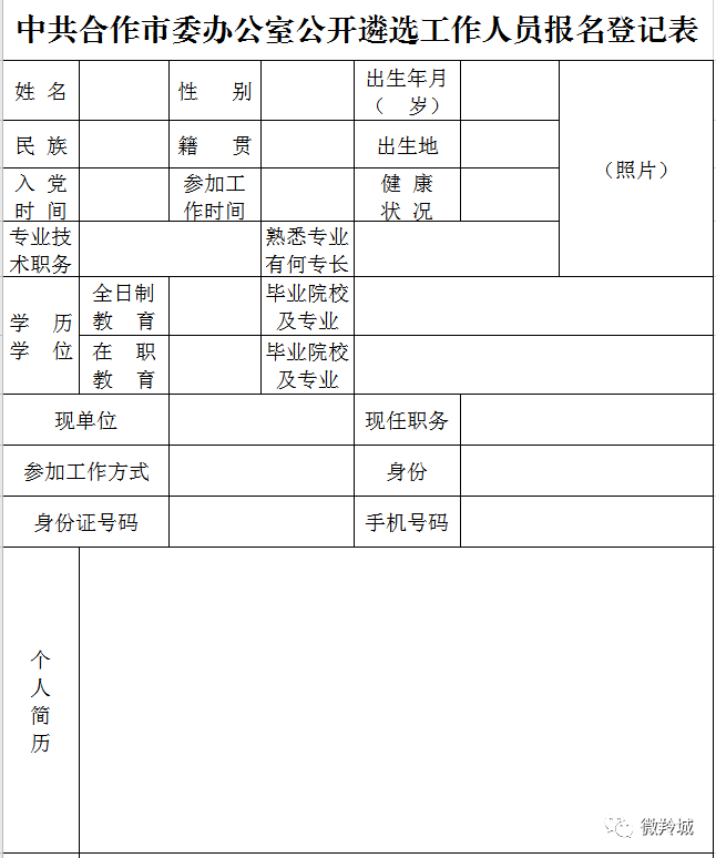 附件:中共合作市委办公室遴选工作人员报名登记表