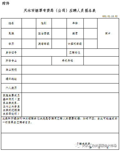 (1)《天水市烟草专卖局(公司)应聘人员报名表》(详见附件)