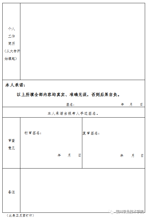 ①由本人填写的《银川职业技术学院2020年公开招聘员额(政府购买服务)报名资格审核表》;