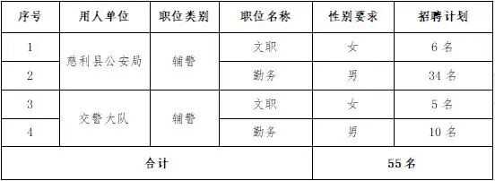 此次共计划招录警务辅助人员55名。