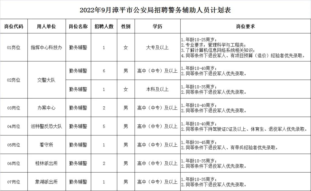 因工作需要,我局将面向社会公开招聘一批警务辅助人员(简称“辅警”),现将有关事项公告如下: