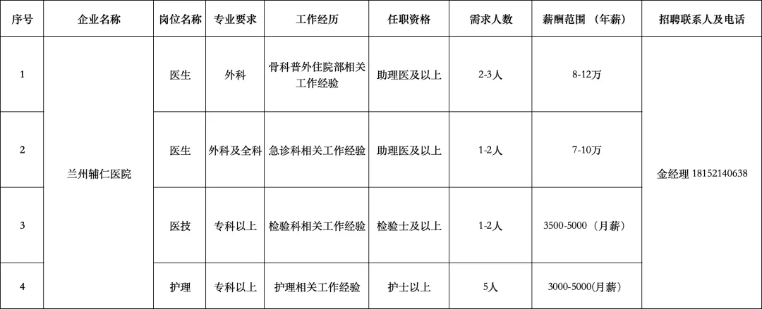 医院根据实际工作需求,面向社会招聘外科、急诊科、检验科、护士医护人员共计12名。