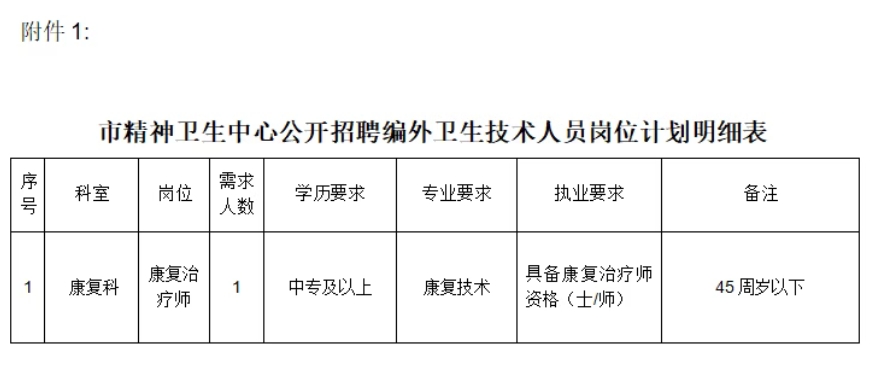 附件 :1、市精神卫生中心公开招聘编外卫生技术人员岗位计划明细表