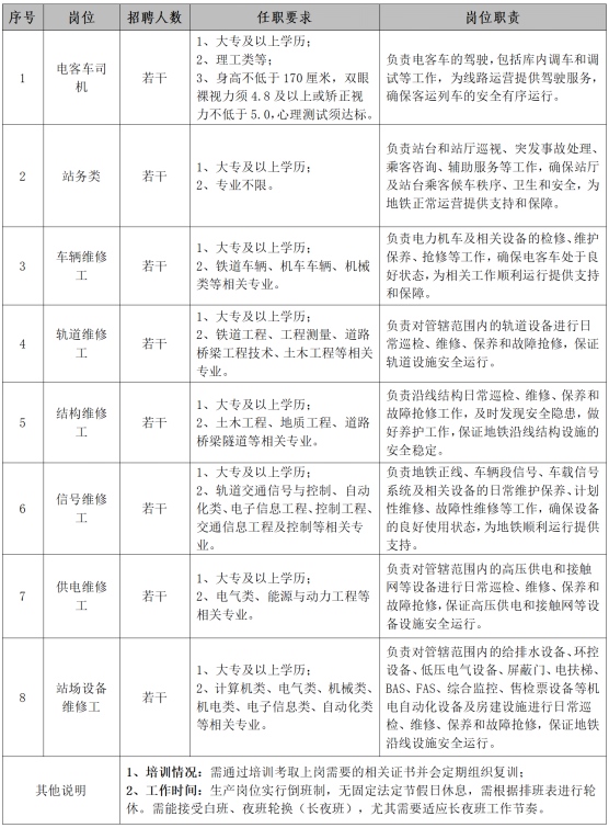 4、最新招聘岗位信息以杭州地铁运营有限公司招聘网站发布为准。咨询电话:0571-69821017/69821029,工作日上午09:30—11:30,下午15:00—17:00,联系人:朱老师、郭老师。