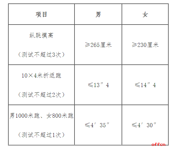 通过资格审查和身高检查的考生,进入体能测试环节,不符合条件的取消资格。