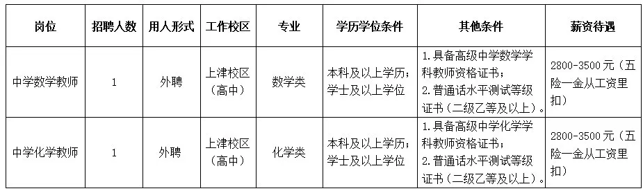 根据学校工作需要,南宁市第十中学上津校区(高中部)面向社会招聘教职工,具体岗位如下: