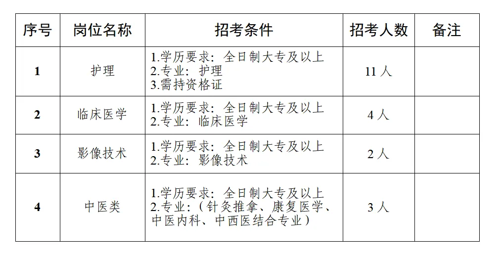 本次计划公开招聘专业技术人员20名,具体岗位、人数及资格条件详见下表。