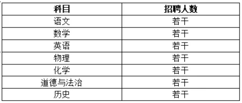 招聘初中语文、数学、英语、物理、化学、道德与法治、历史教师。