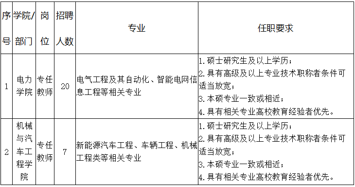 电力学院专任教师20名机械与汽车工程学院专任教师7名
