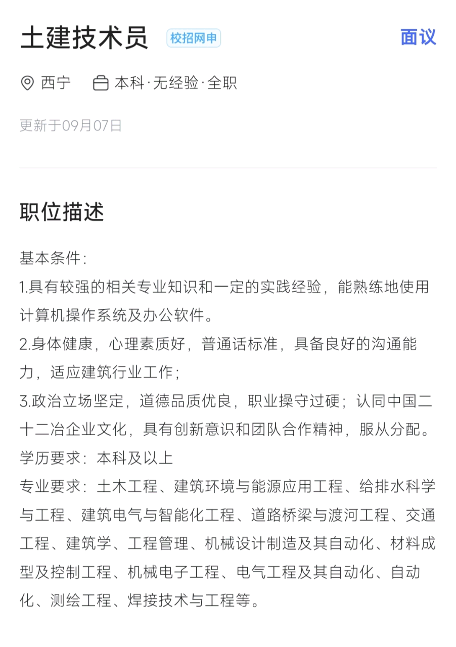 3.身体健康,心理素质好,普通话标准,具备良好的沟通能力,适应建筑行业工作;