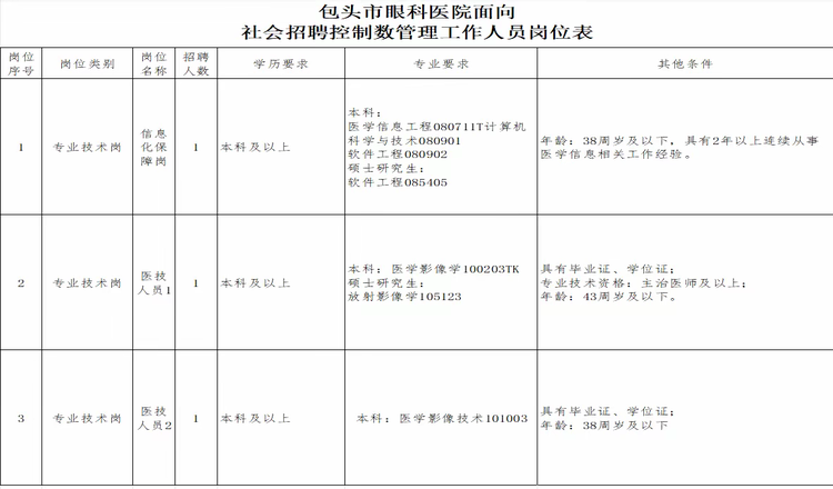 现将包头市眼科医院面向社会招聘控制数有关事项公告如下。