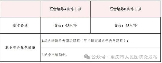 实施“2+2”贯通培养机制:首站2年进入重庆大学博士后流动站,享受该校科研博士后待遇与资源;出站后经双向选择,可进入医院国家级博士后工作站继续开展2年博士后研究,或入职医院。