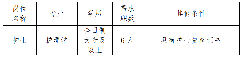 为满足医院发展需求,优化护理人才队伍,现面向社会公开招聘合同制护士6人。具体事项公告如下: