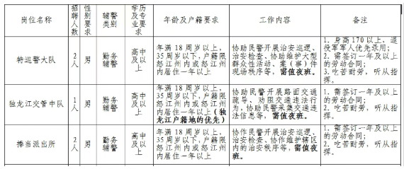 贡山县公安局因工作需要,特面向社会公开招聘5名警务辅助人员,从事警务辅助工作。警务辅助人员不具有公务员(人民警察)身份,不纳入编制管理,行使人民警察职权。