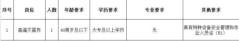 山西医科大学第一医院委托山西九广盛人力资源股份有限公司招聘:高温灭菌岗工作人员1名,用工方式为劳务派遣。