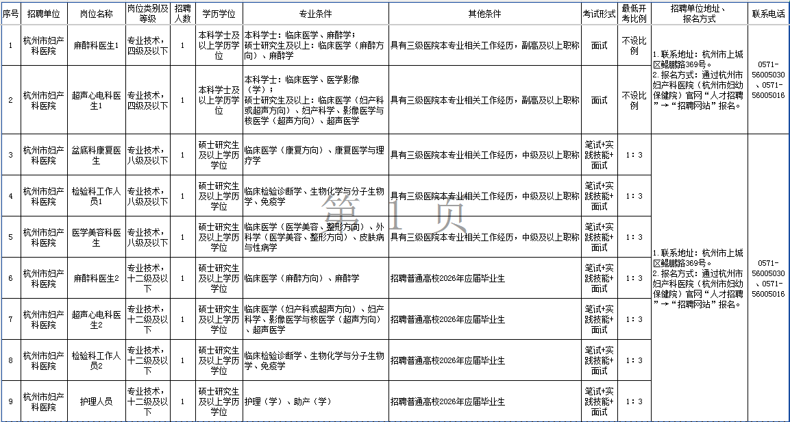 其中,杭州市妇幼保健院心理科医生岗位(序号5)须提供规范化培训单位有关是否完成住院医师规范化培训的证明。