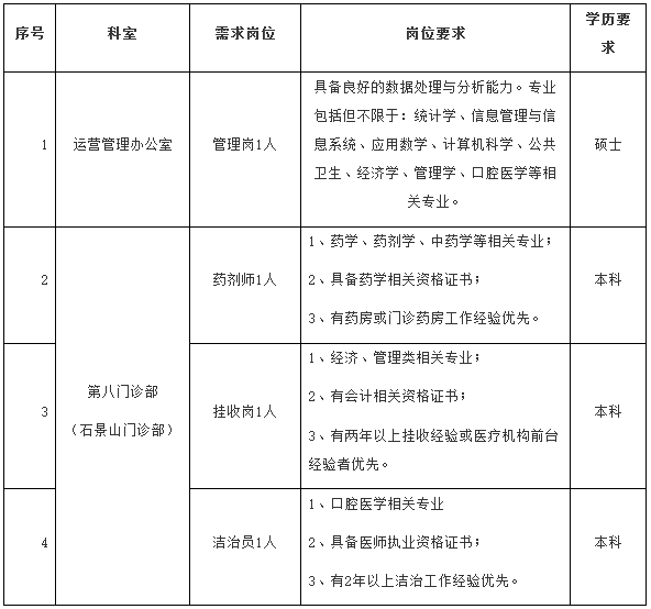 3.具有良好的政治素质和道德品质,并能够服从医院发展大局要求。