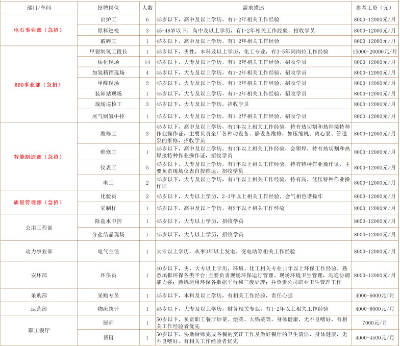 咨询电话:人力资源行政部13304736419(仅限工作时间拨打)面试时间:周二、周四(上午8:00-12:00;下午13:00-17:00)办理入职时间:周一、周三(上午8:00-12:00;下午13:00-17:00)简历投递渠道邮箱:nmgswxcl@163.com面试及入职地址:乌海市海南区低碳产业园区内蒙古三维新材料有限公司综合楼1015室