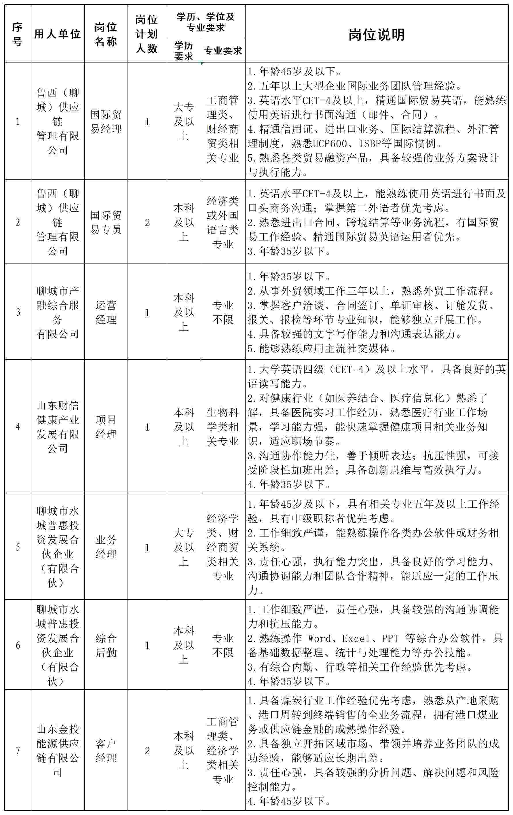 为全力推进公司各业务板块稳健发展,根据各权属子公司人员招聘需要,特委托聊城市鲁西人力资源开发有限公司面向社会公开招聘优秀人才,现将招聘岗位及事项公告如下。