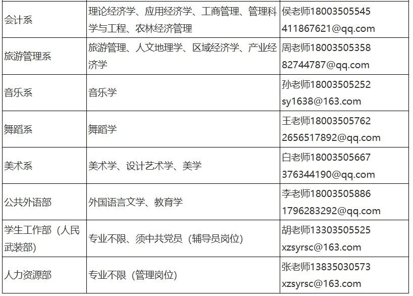 应聘人员请将个人简历电子版发送至对应的各单位联系人电子邮箱和xzsyrsc@163.com。应聘者邮件标题格式统一要求为:应聘岗位+姓名+学科专业。
