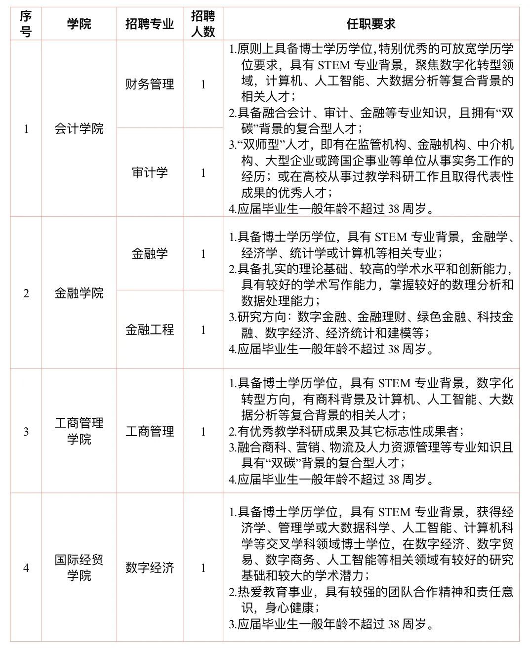 高层次人才:具有高级专业技术职务,在学术界拥有一定影响力,或学校紧缺专业人才。面向会计学、财务管理、审计学、资产评估、金融学、经济学、统计学、智能科学与技术等专业,待遇优厚,薪资待遇面议。