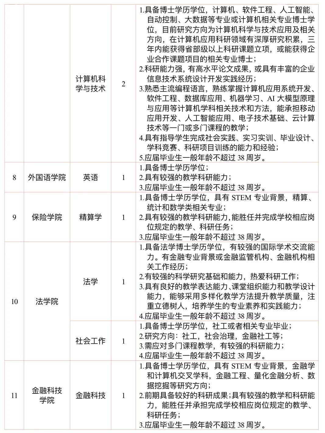 骨干教师:原则上具有博士学历学位,应届博士毕业生38周岁以下,特别优秀的可放宽学历学位要求,根据其学术基础和承担任务给予相应的待遇,详见下表。