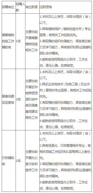 根据工作开展需要,第三方公司招聘3名工作人员,派遣至海南省南繁管理局工作,具体招聘事项公布如下: