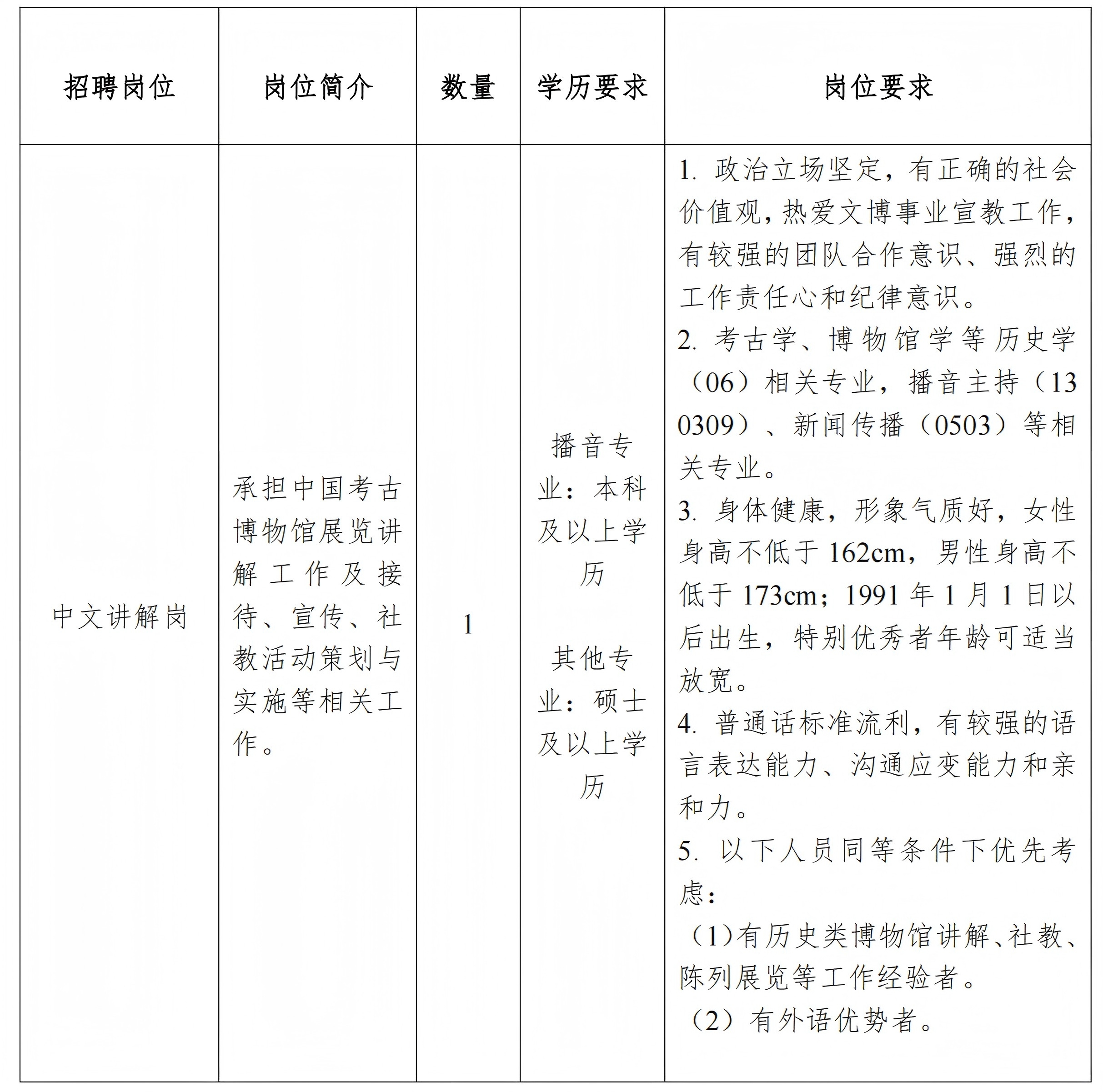 1. 招聘部门:文物与博物馆管理处