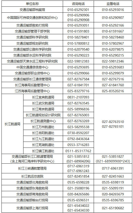 (五)交通运输部所属事业单位2026年度统一公开招聘工作技术咨询电话:010-65299061、010-65299059。
