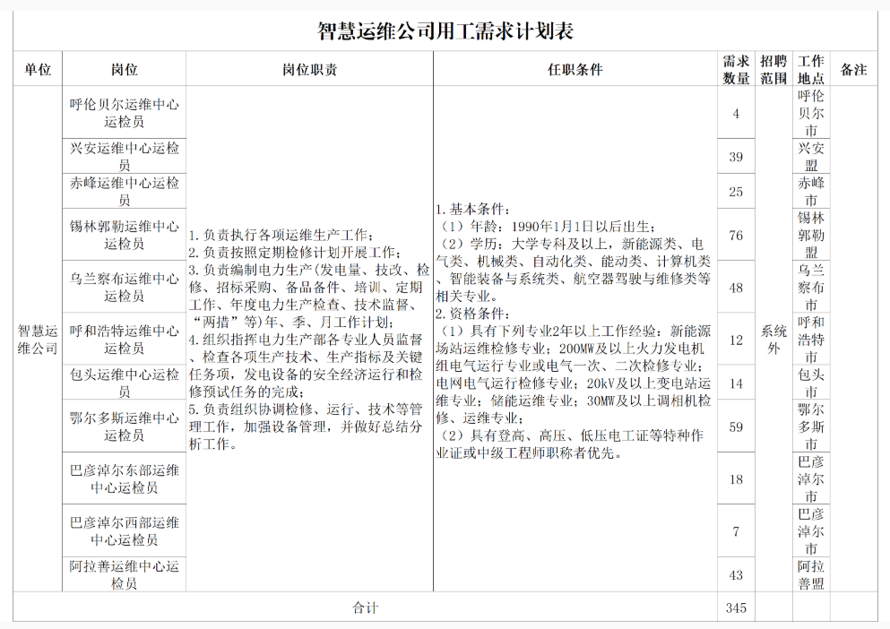 (一)本次智慧运维公司招聘人员为固定期限劳动合同用工,待遇按照内蒙古能源集团有限公司及智慧运维公司等有关规定执行。