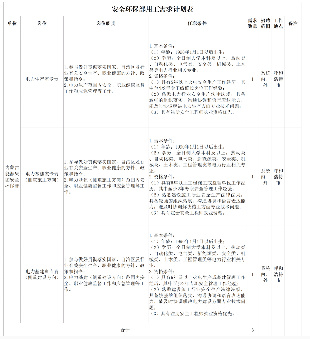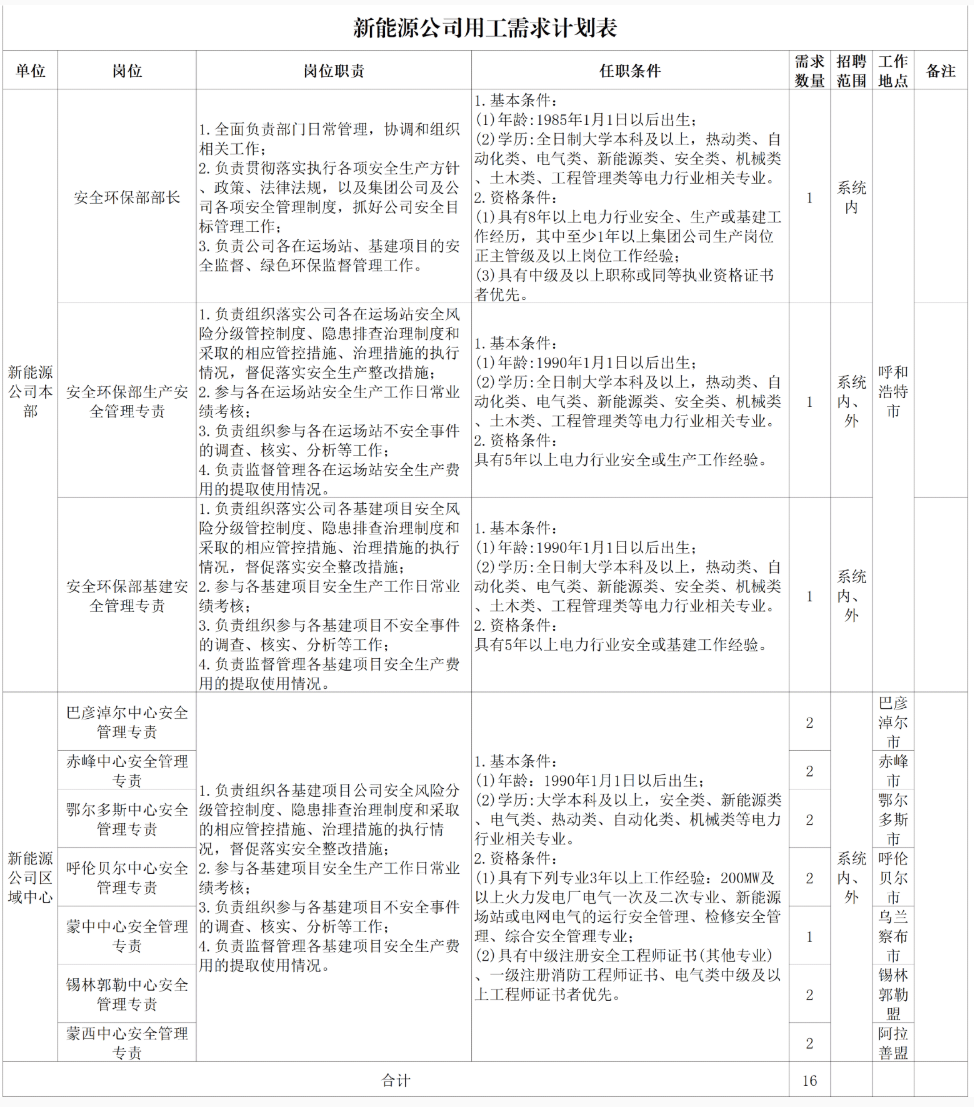 七、本公告由内蒙古能源集团有限公司人力资源部负责解释。