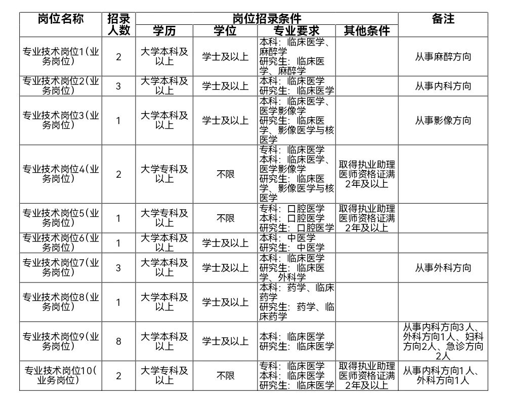 2026年我院设置编制岗位24名,与我院签订聘用合同且在岗的本科合同工经考试合格后即转成医疗卫生辅助人员(享受事业编制待遇),三年内考取相关执业资格证后通过考试转为事业编制。